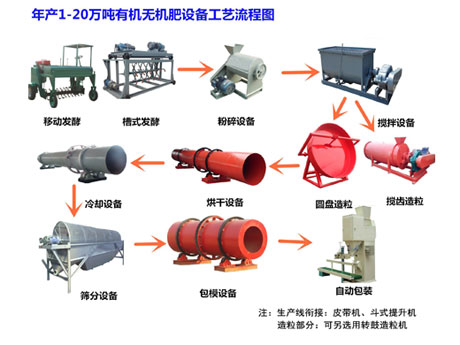 有机肥生产工艺流程与有机肥生产线设备配置息息相关,一般有机肥生产线成套设备主要由发酵系统、干燥系统、除臭除尘系统、粉碎系统、配料系统、混合系统、造粒系统、冷却烘干系统、筛分系统和成品包装系统组成。下面详细说明有机肥生产工艺流程各环节系统的设备需求: